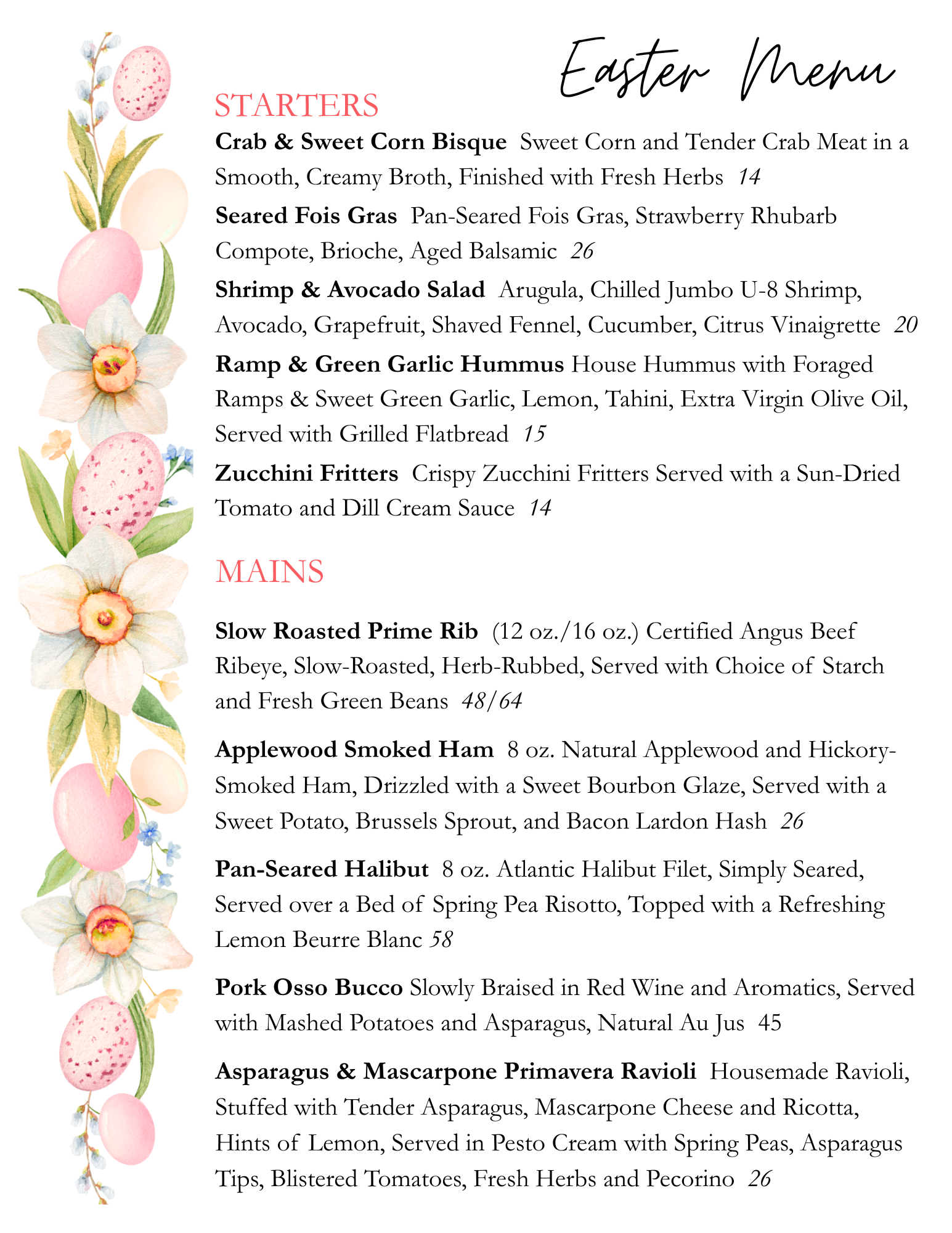 Whether you’re celebrating with family or simply enjoying a holiday meal out, we look forward to making your Easter Sunday feel special.